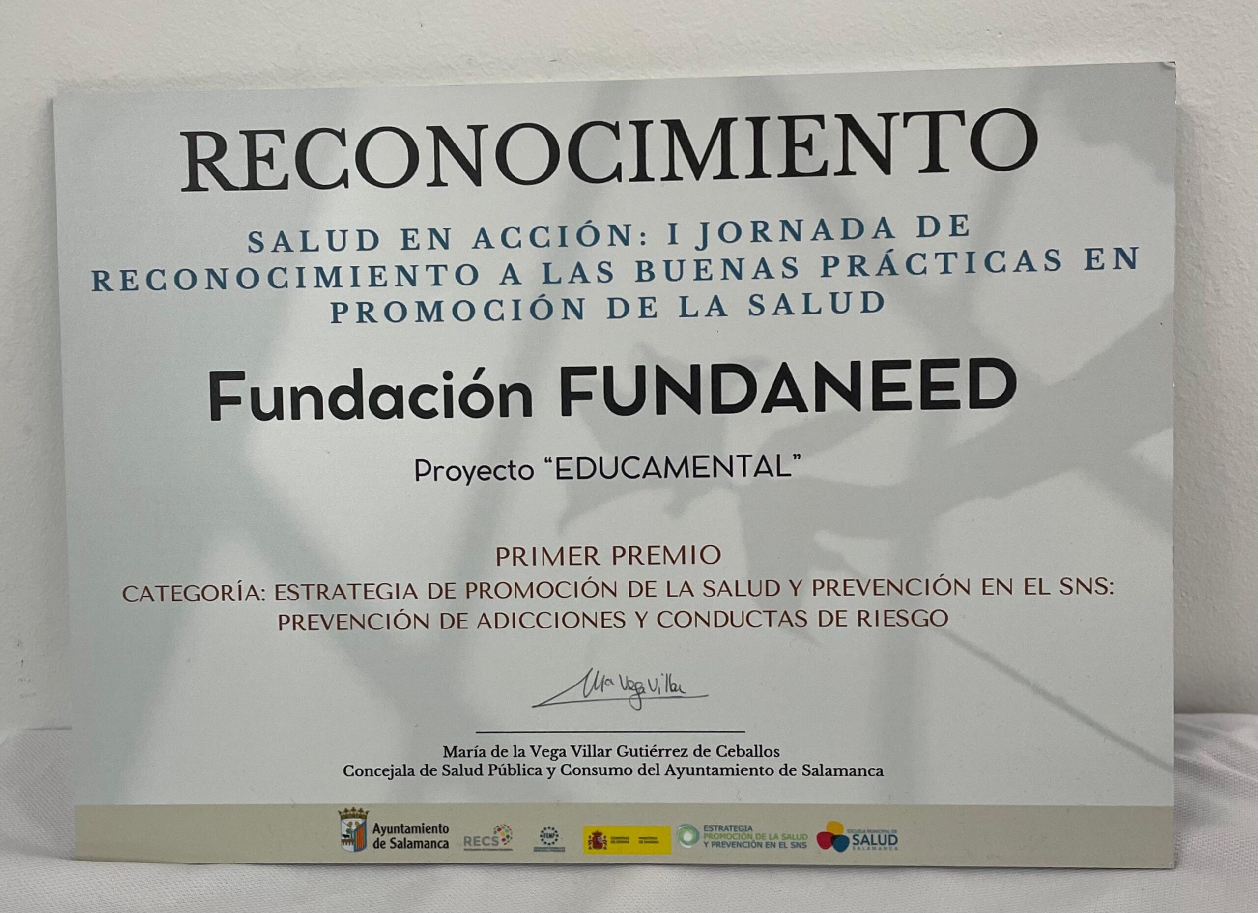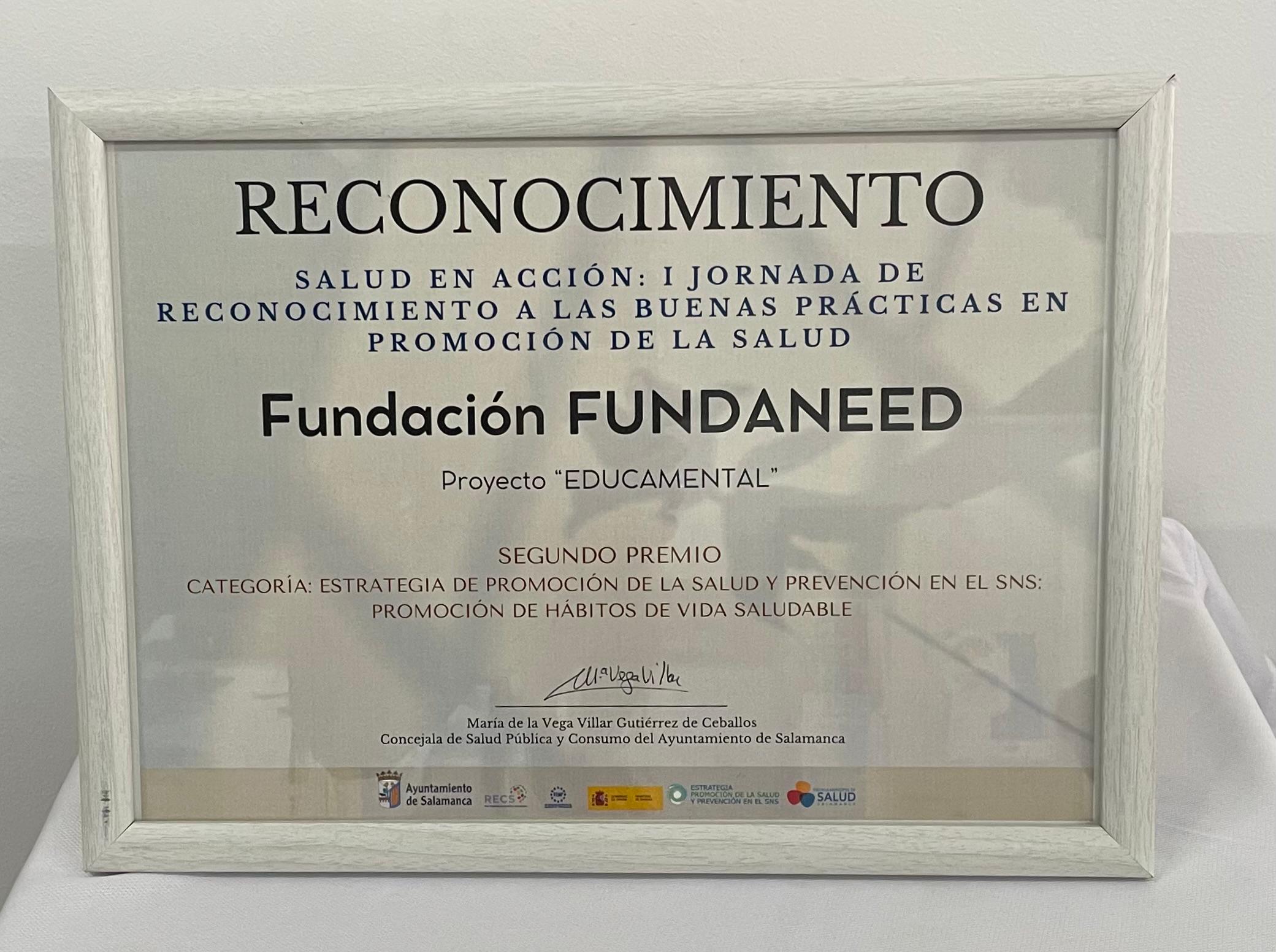 Este mismo proyecto fue reconocido por el Ayuntamiento de Salamanca en el marco de la jornada “Salud en acción: I Jornada de reconocimiento a las buenas prácticas en promoción de la salud”, donde obtuvo el primer premio en la categoría “Estrategia de promoción de la salud y prevención en el SNS. Prevención de adicciones y conductas de riesgo”